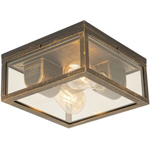 QAZQA Vintage Ceiling Light Antique Gold IP44 2-Light - Charlois Video Give your garden the finishing touch with the Charlois outdoor Ceiling Light! This industrial lamp, made of aluminium and glass, is finished in antique gold and is a real eye-catcher in the garden. With 2 light points, Charlois provides the perfect illumination. The overall dimensions of the lamp are a height of 11.5 cm, a length of 24 cm and a width of 24 cm. Don't forget to order light sources with an E27 fitting (max. 40W) separately, as these are not included. With an IP44 rating, the lamp can be placed outdoors in sheltered areas, such as against the house or under a canopy. Do you need less light? Charlois is dimmable, but a dimmer is not included. Don't hesitate any longer and choose Charlois to upgrade your outdoor space! This lamp is perfect for creating an atmospheric and functional lighting in the garden. Bulb holder: E27 . Max 2 x 40 W, 230 V Suitable for: LED Connecting voltage: 220V/230V Protection