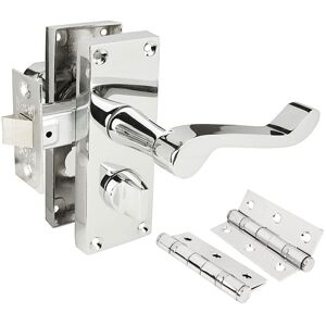 Z206 Victorian scroll privacy interior door handle packs in a polished chrome finish, supplied with a 3 inch door latch (75mm) and a 3 inch hinge. This interior door handle set is a very popular choice with customers and with this door handle pack you can complete one door to create the perfect look.