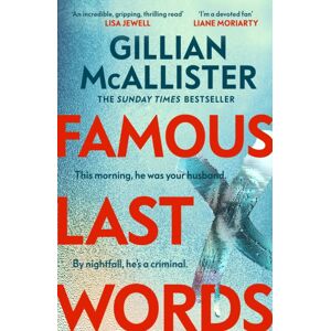 He’s Your Husband. A Father. A Friend. And Now He’s Live on TV... as a Hostage-Taker. THE GRIPPING NEW NOVEL FROM THE BESTSELLING AUTHOR OF INTERNATIONAL PHENOMENON WRONG PLACE, WRONG TIME'Famous Last Words blindsided me with twists and surprises that had me gasping...A brilliant, brilliant book' JODI PICOULT'What an incredible, gripping, thrilling read' LISA JEWELL'Utterly effing magnificent.I could NOT put it down!' MARIAN KEYES---It’s Camilla’s first day back at work. And her daughter’s first day at nursery. But where is her husband Luke? The only trace of him is an unfinished note. Then she sees the breaking news: a hostage situation just streets away.Next the police arrive: Luke is caught up in it. But he isn't a hostage. Luke – doting father, successful writer, eternal optimist – is the gunman. What Camilla does next will be crucial. Because only she can figure out what clue lies in the note he left behind . . . --PRAISE FOR FAMOUS LAST WORDS'Few things make me happier than a new Gillian McAllister book, and Famous Last Words did not let me down.Complex, surprising and utterly gripping' JANE FALLON'An incredibly page-turning mystery wrapped up in a thoughtful and thought-provoking exploration of a most unusual kind of grief.Absolutely outstanding, one of my books of the year' ANDREA MARA'Completely addictive.I was as desperate to find out the truth as any of the characters in the book ? if not more so!' SOPHIA HANNAH'A totally fresh read that left me guessing until the very end!' ASHLEY FLOWERS'McAllister is an expert in taut, twisty thrillers' i PAPER'A thriller full of unexpected twists and turns, packing a real emotional punch' RED MAGAZINEPRAISE FOR GILLIAN MCALLISTER‘A first-class thriller’ SUNDAY TIMES‘A writer at the top of her game’ CLAIRE DOUGLAS'Extraordinary' DAILY MAIL