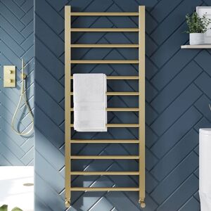 Introducing the Heated Ladder Towel Rail Radiator with Manual Valves Pair (Straight) by Foxheath Ltd. Our towel rails with valves are shipped via a Two Working Day service. A Two Working Day service is also applied to volume towel rails with valves. This product is delivered in one parcel. Crafted from the highest quality sourced materials Strong & durable construction (low carbon steel) Luxury Brushed Brass finish Features stylish tubed bars (22mm diameter) Fully compatible with all UK heating systems Designed to provide maximum heat output Complete with matching Brushed Brass straight manual radiator valves pair EN442 Certified / ISO Certified / UKCA CE Approved Product Connection/Thread Size: UK Standard ½" BSP Fixing kit, including vent, pre-supplied Duel-Fuel: suitable for hot water central heating systems & electric elements Electric Elements - Sold Separately Radiator Valves - Sold Separately Make the Smart Choice With us, you're not just buying a product - you’re investing in