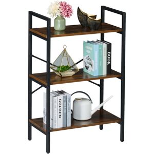 Relaxdays Bookcase, 3 Tiers, 92x60x32 cm, Shelving Unit, Industrial, Open Storage, Free-Standing Bookshelf, Brown/Black