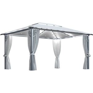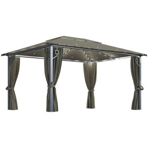 This stylish gazebo will surely turn your yard into a sophisticated and functional focal point! It is designed to provide a cool place for outdoor parties, family picnics, backyard barbecues and other social gatherings. It is constructed with aluminium pole and powder coated steel supporting tube, which ensures superior sturdiness and durability. The canopy and side walls are made of quality polyester fabric with PA coating, protecting you against the harmful rays and mild rain. A well-designed 2-tier roof ensures ample airflow underneath. Additionally, the curtains and mesh screens are included for full protection, giving you added privacy while keeping annoying mosquitoes and other insects away. Hooks and loop fasteners are included for easy attachment. What's more, the string light creates a cosy atmosphere in your garden when the sun goes down. The lights bring no pollutions to the environment as it is charged by solar energy during the day. Note: Please do not leave it out in