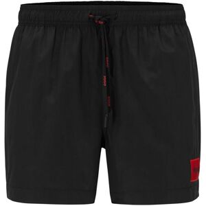 Fully lined swim shorts by HUGO in quick-drying material with a red logo label and drawstring waist. For our RESPONSIBLE products we always use at least 60% more sustainable raw materials. This garment is made from at least 60% certified recycled polyamide. By using recycled polyamide, we aim to save resources by making use of existing plastic material. Recycled nylon is usually made from pre-consumer spinning or fabric waste and may also come from post-consumer industrial fishing nets. We only use raw materials with a verified chain of custody to ensure the use of certified recycled polyamide.Features: - Fit Length: Short Length- Slit: Side Slit- Bottom Special Closure: Drawstring- Bottom Waistband: Elastic Waistband- Pockets Bottom Front: Side PocketsSpecifications: - Material: Collar: Collar: 2% Elastane, 98% Cotton, Innersole: 50% Polyamide, 50% Polyurethane, Lining: 100% Polyester, Quality: 100% Polyamide, Sole: 100% Rubber, Upper Material: 100% Cow Skin, Waistband: 2% Elastane, 98% Cotton, Pocketing: 35% Cotton, 65% Polyester