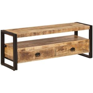 This beautiful mango wooden TV cabinet is trendy yet practical that will be a focal point of your room. This vintage-style TV cabinet is made of solid mango wood, enabling it highly stable and durable. Mango wood is a dense and robust hardwood which has beautiful brown or golden streaks and contours on its surface. Every step of the process is carried out with the greatest care, be it polishing, painting or lacquering. Thanks to the reinforced steel frame, the TV stand is extremely steady. It has two drawers for storing knick-knacks and a shelf for keeping multimedia appliances, gaming consoles and magazines. The TV stand can also be used as a side cabinet, hi-fi cabinet, etc. Important note: Colours vary from piece to piece, making each of our TV cabinets unique. The delivery is random, ensuring the exclusivity and individuality of your product. Williston Forge