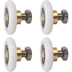 Shower Door Replacement Roller Type: 4 Pieces Shower Door Rolle Wheel Thickness: 5.5mm, Comes With with screws, suitable for the shower door from 4 to 6mm thick. Roll diameter: 27mm, inner hole: 5mm, fixed with M6 screws. The pulley is made of copper wheels + pom. The screw is made of stainless steel, which is resistant to corrosion. corrosion, rust and good all-round performance. The pulley has a strong capacity; loading capacity and good stability; the coefficient of friction is small, and the mute effect is good. Easy to clean. install, often used in bathroom Push Door Hanger / Track. High Quality Our shower door roller uses high quality pure copper poles, which improves effectively the ability load-carrying and suitable for; different types of shower rooms to ensure your door has the most comfortable sliding. Package Contents 4 Shower Door Rollers 4m6 Stainless Steel Screws< br />Applicable to; the bathroom door The fixed pulley of the shower door is suitable for; most shower