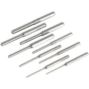 Sealey Premier Imperial Roll Pin Punch Set 1/8-1/2" 9pc Features: Hardened, tempered and fully polished Chrome Vanadium steel punches. Supplied in tool roll. Technical Details: • Hardened, tempered and fully polished Chrome Vanadium steel punches. • Supplied in tool roll. • Sizes: Ø1/8", 5/32", 3/16", 7/32", 1/4", 5/16", 3/8", 7/16", 1/2". • Model No. AK9109 • Model No. AK9109 Additional Information: • One of a comprehensive range of Premier Hand Tools, suitable for daily professional use. • Hardened, tempered and fully polished Chrome Vanadium steel punches. • Supplied in tool roll. • Sizes: Ø1/8", 5/32", 3/16", 7/32", 1/4", 5/16", 3/8", 7/16", 1/2".