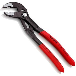 Due to its compact size, it is particularly suitable for work in confined spaces. Despite this, it achieves a gripping capacity for pipes with a diameter of up to 1 ½ inches or 42 mm and for nuts up to a wrench opening of 36 mm. Knipex Waterpump Pliers 180mm The Knipex 87 01 180 Cobra with a length of 180 mm is one of the medium-sized models of Cobra water pump pliers from Knipex. The benefits of working with these water pump pliers are plain to see. They are compact, light and stable, can be positioned on the component quickly and are self-locking, e.g. on pipes and nuts. Due to its compact size, it is particularly suitable for work in confined spaces. Despite this, it achieves a gripping capacity for pipes with a diameter of up to 1 ½ inches or 42 mm and for nuts up to a wrench opening of 36 mm. For pipes, nuts, sleeves, for various kinds of components: the professional user applies the Knipex Cobra quickly and accurately with just one hand movement. The spring-loaded hinge bolt