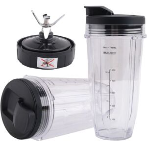 [Upgraded] We provide perfect replacement parts for blender, now you can replace your old and broken blender blades, cups and lids with our new kit. Our spout lids and blades all pass leak testing so you don't need to worry about liquid out during use or travel. 7 Fins Replacement Blade: Main body is made of high quality material. Much better in strength, stiffness, heat distortion temperatures, abrasion resistance. Fins are coated with hard foam. (Not plastic because it's the MALE version, the blade bottom and the machine top, must one be soft and the other be hard to work properly) Bottom Blade with 6 Blades: 2.4mm, thicker and more . Upgraded bottom blade design, with double layers pillars, which make the blade holder works more smoothly and steadily. Be to tear through the toughest ingredients. 24oz Replacement Cups: Maximum Capacity: 24 oz - 710 ml; Made of high quality material. -free and dishwasher-safe. Clear to see the food that you add to the cups. for long time use, not