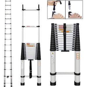 Description: *2.6m (8ft5) telescopic style climb ladder *Extendable design, convenient to use and easy to carry around *Great helper for both indoor household use and outdoor activities *Safe and compact----black anti-slip rubber sleeve on the bottom of ladder step and multiple rubbers between two neighboring steps to avoid bumping and friction *Locking levels with locking mechanism by European Safety Standard EN131 ? Specification: Specification: Number of Ladder Step: 9 Step Interval: About 28cm Net Weight: About 7kg (15.5lbs) Max Load Capacity: 150kg (330lbs) Package Size: 72cm x 47cm x 9cm Dimensions (when fully opened): 260cm x 47cm x 9cm Package included: *1 x Telescopic Ladder *1 x instruction