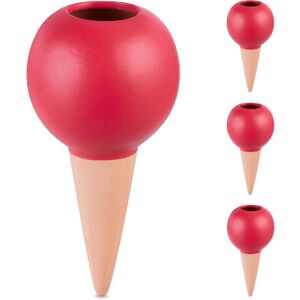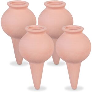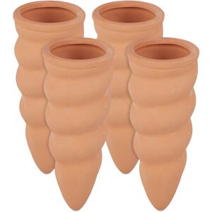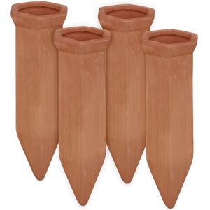 With the 4 clay cones, you can automatically supply plants with water during the day during a hot summer. The permeable clay material releases water to keep the soil moist. Simply sink the watering aids into the soil or dig them in to the edge and then fill the opening with water. Now you can go about your plans without any worries while your plants are safely watered. Please note: The clay tips are not suitable for bottles of any kind. Clay cone set of 4 in detail - Dimensions H x D: approx. 12 x 6 cm - Opening D: approx. 2.5 cm - Volume each: approx. 100 ml - Weight each: approx. 70 g - Material: Ceramic - Colour: Terracotta Plant waterer for watering plants - Automatic water supply for plants - For balcony boxes, potted plants, raised beds and much more. - Suitable for the home, terrace or balcony - Ideal in the office or at home for lazy waterers - Made from water-permeable clay for metered delivery - Clay balls are not suitable for bottles