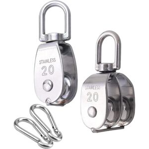 The pulleys are made of high-quality 304 stainless steel, which has high hardness, stability, and durability, and can effectively prevent rust and oxidation. The unique 360-degree rotating design effectively prevents the rope from tangling and is easy to use. The soft roller ensures strong rope tension. The pulley assembly is firmly installed, and the internal space is equipped with gaskets to effectively avoid noise problems caused by metal collisions. The M20 roller measures 73 x 25 mm and is suitable for ropes with a diameter of up to 8 mm. The maximum load weight of a single roller is 75 kg, which has a high load capacity. Backpack pulleys, key rings, chains, ropes, camping, hiking, fishing, pets, indoor and outdoor equipment.