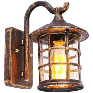The wall light would complement outdoor spaces in a classic or traditional style. The outdoor wall lights are made of black aluminium with a gold bronze finish. The shade is made of clear glass. Dimensions - 25cm x 22cm x 15cm. The antique wall light accepts 1 x E27 bulb (not included). The wall light makes the most of your outdoor space - ideal for mounting on patio walls, porches, entryways, near the front door or in the garden. The waterproof wall light has a retro design that gives your patio a warm ambiance. The antique wall light is made of aluminum, the surface is painted and worn and is not easy to rust. The outdoor wall light is easy to install and complies with protection class IP44. The transparent glass lampshade is blown using a special process. E27 bulb is included in the package More product details Dimensions: depth 22 cm, height 25 cm Socket type: E27 Material: aluminum + glass IP protection rating: IP44 Setting: entrance, outdoor garden, courtyard, balcony Delivery