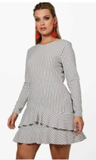Ribbed jersey fabric for comfort and stretch Striped pattern adds visual interest Button-up front for versatile styling Long sleeves for warmth and coverage Flattering crew neckline This long-sleeved striped top is a versatile addition to your casual wardrobe. The ribbed jersey fabric offers both comfort and a figure-hugging fit, perfect for showcasing your curves. The button-up front allows for customisable styling - wear it fully buttoned for a polished look or leave a few undone for a relaxed vibe. Pair it with wide-leg trousers and trainers for a chic daytime ensemble, or dress it up with a midi skirt and ankle boots for family gatherings. The striped pattern adds a touch of visual interest, making it an ideal choice for various casual occasions. Layer it under a denim jacket for cooler days or wear it on its own when the temperature rises. This top effortlessly combines style and comfort, making it a must-have for the fashion-forward woman who values both trend and practicality.