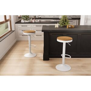 The swivel bar stool is a good bang for your buck. High quality and original design are focused on. This swivel adjustable-height bar stool with a round wood seat & footrest offers extra seats around your kitchen island & bar counter. The solid wood seat is made of 100% natural Elm wood, which means every surface is a unique one. This comfy round bar stool with a natural texture surface will be the star to brighten up your home. The colour of the powder-coated iron frame goes with the seat colour, and the pedestal of this breakfast swivel barstool is specially treated for a matte texture and is not easy to scratch. Blue Elephant Colour: Brown/Black