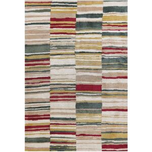 Colourful Striped Area Rug. This area rug is a great way to bring a dash of colours into your home. Modern striped pattern combined with high-quality tufted polyester fabric makes it the perfect accessory for bedroom, living room or even dining room. The wonderfully soft short pile carpet is suitable for use with underfloor heating and can be combined with all living styles, but works exceptionally well in a traditional, modern or contemporary interiors. Details: Product Type: Low Pile Style: Boho General Color: Multicolour, Brown, Red, Beige Material Type: Fabric Main Material: Fabric Backing Material: Fabric Material Composition: 100% Polyester Shape: Rectangular GSM: 1500 g/m2 Pattern: Geometric Pattern Suitable for Underfloor Heating: Yes Weaving: Tufted Dimensions: Pile Height: 0.8 cm Width: 140 cm Length: 200 cm Weight: 8 kg Offer Includes: 1 x Rug Key Features: Suitable for Underfloor Heating, Works Great with Many Interior Styles, Intriguing Combination of Colours, Striking,