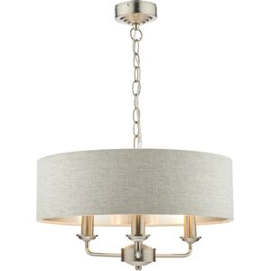 This Laura Ashley Sorrento is a subtle and sophisticated 3 light ceiling pendant light. The light features a natural linen shade and Matt Black finish. It's a chic and on trend fitting that is going to add a touch of elegance into your room, especially when matched with other product from the range. Height is adjustable prior to installation. FEATURES * Ceiling pendant light * Matt Black finish * Natural linen shade * Metallic lining * Takes 3 lamps * Class 2 (double insulated) * Dimmable with suitable lamp / dimmer switch * Height adjustable prior to installation SIZE: * Drop: 40 - 135 cm * Diameter: 45 cm * Plate diameter: 10 cm BULBS * Requires 3 x Small Edison Screw LED Candle Lamps—NOT INCLUDED