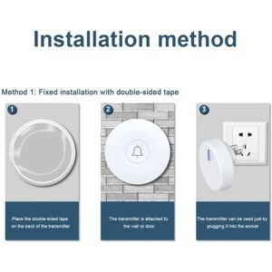 [] the button and energy is converted into electrical energy. No need to worry about the battery running out of power [Distinguish front and rear doors] different buttons, and the receiver emit different melodies. It is convenient to know which door has visitors [Brilliant Lights] Very eye-catching lights, very suitable for the elderly or deaf-mute people [150 meters open distance] The actual usage distance is suitable for most families [60 melodies]Rich melodies give the family a more beautiful environment [5 levels of volume] You can choose the appropriate volume according to your family's needs. High decibel volume not miss visitors, low decibel volume not disturb family members' rest [Free Pairing] buttons support up to 8, and there are no restrictions on receivers. [IP44 Waterproof]IP44 supports daily water splashing. If it needs to be placed outdoors, we recommend purchasing an additional professional doorbell waterproof cover, which and longer to use. Specification Receiver