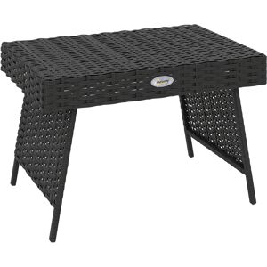 Not your classic rattan table-this Outsunny piece is doing things differently this season. The oblong shape is fitted with two long panel legs-a more futuristic look. The legs fold into each other, so this table is easy to store away. The galvanised steel frame means a strong structure, wrapped in plastic wicker: a rattan look which is great for extended use in your garden.Features:Outdoor coffee table has oblong tabletop: plenty of holding roomSteel frame for a strong structurePlastic wicker for a stylish garden rattan lookFoldable legs offer plenty of support. Rattan side table is easy to carry and storeMaximum load 30 kg, no assembly required