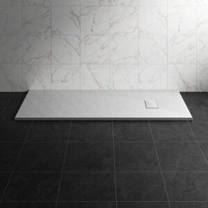 Shower Tray Features: Durable Construction: SMC materials are known for their strength and resilience, making the shower tray highly durable and long-lasting. Elegant Appearance: The stone pattern provides a sophisticated look, adding a touch of luxury to any bathroom setting. Non-Slip Surface: Designed for safety, the textured finish helps prevent slipping, ensuring a safer showering experience. Lightweight Design: Despite its robust make, an SMC shower tray is lightweight, making installation easier and more manageable. Easy to Clean: The smooth, non-porous surface prevents the accumulation of grime and is easy to maintain, enhancing hygiene. Eco-Friendly: SMC materials can be produced using environmentally friendly processes, making it a sustainable choice for conscious consumers. Specification: -Tray Type: Rectangle -Colour: White -Material: SMC -Non-Slip surface -Height: 32mm -Length: 1700mm -Width: 700mm -Waste Hole Size: 90mm -Waste Location: Side of Tray -Drain Cover Size: