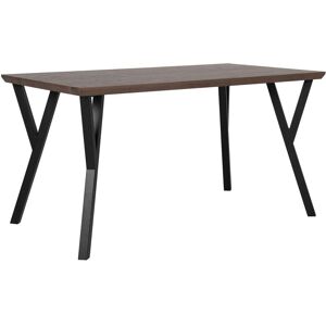 Industrial Dining Table With Metal Base. This minimalist dining table is a stylish complement to any dining room or kitchen in a Scandinavian or modern setting. The table top is crafted from durable and easy-care MDF and is supported by four metal flared legs in black. The overall look of the table is defined by an elegant matte finish. The table can seat up to 6 people and it's perfect for family dinners or coffee with friends. Details: Product Type: Dining Table Style: Industrial General Color: Brown, Black Material Type: Engineered Wood Main Material: MDF Additional Material: Metal Legs material: Metal Top Material: Engineered Wood Shape: Rectangular Finish: Veneered Seats Up To: 6 People Dimensions: Width: 80 cm Length: 140 cm Height: 75 cm Weight: 27 kg Weight Capacity: 80 kg Offer Includes: 1 x Table Key Features: Works Great with Many Interior Styles, Modern Design, High-Quality Materials, Exceptionally Low-Maintenance, For Best Care, Protect Against Heat and Moisture with