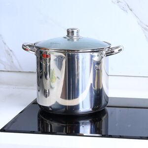 Buckingham Deep Induction Stainless Steel Stock Pot with Glass Lid is a premium, high-capacity cookware item designed for family cooking, catering, and professional use, perfect for preparing soups, stews, curries, stocks, and pasta in large quantities. Made from heavy-duty stainless steel with a stylish mirror-polished finish, it ensures exceptional durability, rust resistance, and even heat distribution on all stovetops including induction, gas, ceramic, and electric. The tempered glass lid with a steam vent allows you to monitor cooking without losing flavor, while ergonomic riveted handles provide safe and comfortable handling. This versatile stock pot is dishwasher safe, easy to clean, and perfect for everything from everyday family meals to large gatherings and catering events. Available Sizes: 24 cm , 9 Litres 26 cm , 11 Litres 28 cm , 13.5 Litres 30 cm , 16.5 Litres 32 cm , 19 Litres Buckingham Capacity: 13.5 L, Size: 60.96cm H x 76.2cm W x 71.12cm D