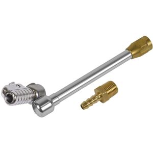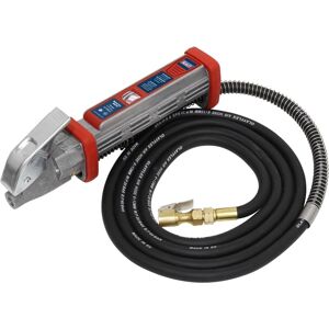 Sealey Tyre Inflator with 2.7m Hose & Clip-On Connector Features: Manufactured to comply with EN 12645. Aluminium body with rubber bumper. Linear pressure scale, dual calibrated in psi and bar, with parallax correction. 2.7m Flexible hose fitted with clip-on air connector. Technical Details: • Manufactured to comply with EN 12645. • Aluminium body with rubber bumper. • Linear pressure scale, dual calibrated in psi and bar, with parallax correction. • 2.7m Flexible hose fitted with clip-on air connector. • Range: 0-9.5bar(0-138psi). • Model No. SA372 • Model No. SA372 Additional Information: • Manufactured to comply with EN 12645. • Aluminium body with rubber bumper. • Linear pressure scale, dual calibrated in psi and bar, with parallax correction. • 2.7m Flexible hose fitted with clip-on air connector. • Range: 0-9.5bar(0-138psi).