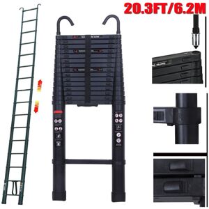 Dayplus - 6.2M Telescopic Ladder Long 20.3FT Extension with Stable Hooks 15 Steps Safety