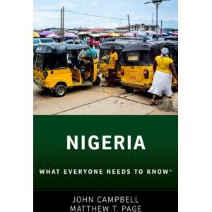 As the "Giant of Africa," Nigeria is home to about twenty percent of the population of Sub-Saharan Africa, serves as Africa's largest producer of oil and natural gas, comprises Africa's largest economy, and represents the cultural center of African literature, film, and music.Yet it is plagued by problems that keep it from realizing its potential as a world power.Boko Haram, a radical, Islamist insurrection centered in the northeast of the country, is a pervasive security challenge, as is the continuous restiveness in the Niger Delta, the heartland of Nigeria's petroleum wealth.The former seeks to destroy the secular Nigerian state; the latter reflects the popular sentiment in the region that the Nigerian people are entitled to a greater share of the wealth it produces.There is also persistent violence associated with land and water use, ethnicity, and religion. In Nigeria: What Everyone Needs to Know, John Campbell and Matthew Page provide a rich contemporary overview of this crucial African country.Delving into Nigeria's recent history, politics, and culture, this volume tackles essential questions related to widening inequality stemming from Nigeria's oil wealth, its historic 2015 presidential election, the persistent security threat of Boko Haram, rampant government corruption, human rights concerns, and the continual conflicts that arise in a country that is roughly half Christian and half Muslim. With its continent-wide influence in a host of areas, Nigeria's success as a democracy is in the fundamental interest of its African neighbors, the United States, and the international community.This book will provide interested readers with an accessible, one-of-a-kind overview of this significant country.