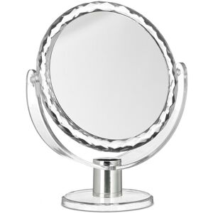 This round magnifying vanity mirror ensures that you have a perfect view during your morning ablutions, putting on makeup, shaving or plucking your eyebrows. The small standing cheval can be tilted to adjust it to just the right angle. There are two side to this mirror, one with and one without magnification. A pedestal stand ensures that you can set the mirror up and use it right away. Thanks to the simple and decorative design, the round mini cheval mirror matches most interior styles seamlessly, whether it is in the bathroom, bedroom or dressing room. Magnifying Cosmetic Mirror • Total size: H x W x D: app. 28 x 18 x 10 cm • Diameter of the glass: app. 14.5 cm • Weight: approx. 0.3 kg • Material: Made of plastic and glass • Colour: Silver Standing Vanity Mirror • 2 x Magnification for precision • Flipside for normal use • Standing - No drilling or gluing required • Round pedestal stand for stability • Timeless decorative design Included in Delivery • 1 x Vanity mirror • Decorative