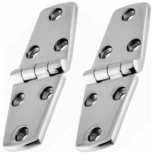 Size: 102*38mm, thickness: 4.5mm, hole diameter: 5.3mm. Rotation range: 180 degrees. Material: 316 stainless steel hinge. Hole diameter: 5mm. Scope of application: marine, yacht, stainless steel doors, metal display cabinets, etc.Description: Length: 102*38mm; Hole Diameter: 5.3mm Rotation Range up to 180° Color: Silver Material: 316 Stainless Steel Package Content: 2 x Marine Hinges