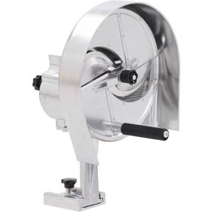 With our user-friendly vegetable cutter, you can effortlessly cut different types of vegetables manually. It is perfect for both daily and professional use, including homes, hotels, restaurants, schools and so on. Featuring a simple and robust aluminium construction, the vegetable cutting machine has sharp blades made of stainless steel for high efficiency and durability. The cutting thickness is adjustable ranging from 0.3 mm to 8 mm. Additionally, the vegetable cutter can be easily and quickly attached to a worktop with the included mounting materials. The product is easy to assemble. If you are interested in food and gastronomy, you cannot miss this vegetable cutter! Colour: Silver Frame material: Aluminum Blade material: Stainless steel Size: 22 x 44.5 cm (W x H) Disc diameter: 25.4 cm Adjustable cutting thickness: 0.3-8 mm Easy to attach to a table Easy to clean Mounting materials included