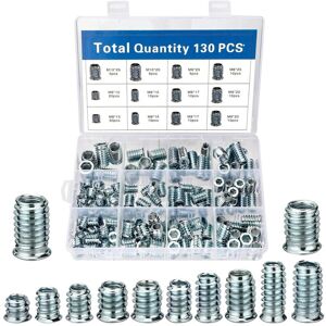 【High Quality Materials】Screw-in Nuts is made of high quality carbon steel, the surface treatment is blue and white zinc plated, high hardness, perfect wear resistance, oxidation resistance and excellent rust resistance, durable. 【130 Pieces Threaded Insert Kit】12 different types of threaded insert: 20 pieces: M6 x 10mm, 20 pieces: M6 x 13mm, 10 pieces: M6 x 15mm, 10 pieces: M6 x 17mm, 10 pieces: M6 x 20mm, 5 pieces: M6 x 25mm, 15 pieces: M8 x 15mm, 10 pieces: M8 x 17mm, 10 pieces: M8 x 20mm, 10 pieces: M8 x 25mm, 5 pieces: M10 x 20mm, 5 pieces: M10 x 25mm. 【Practical Design】The unique male thread provides a positive lock, not easy to loosen, preventing stripping by twisting or vibration. Comes in a quality transparent box with 12 compartments for easy sorting and use. 【Easy to Install】Drill a suitable hole and tighten with an Allen key, easy to use and no other complicated tools are needed. 【Widely Used】Suitable for modern furniture combinations, such as furniture, drawers, cabinets,