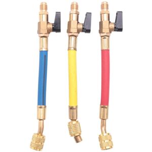 Description: [WIDE APPLICATION] The ac hose with low loss fittings good for R410a and most other refrigerants like R22, R134a, R12, R502.need adapter. [HIGH WORKING PRESSURE] The working pressure of R410 Refrigerant Charging hoses can get 800PSI, burst pressure 4000 PSI. [WELL DESIGN] HVAC Hose designed to features with 45 degrees angle on the service port site for easier access, thread size 1/4 inch SAE male and female flare. Meet 1/4 inch SAE Requirement for Refrigerant Permutation. [PREMIUM QUALITY] The ac charging hose made of aluminum and rubber, premium refrigerant charging hoses last long; easy to operate and install, strong sealing for durability and safety. NOTE:Marked R-410aThe pressure range is suitable for R410a, but it cannot be used directly and needs tobe used with an adapter the label words on the product are random, Cannot be chosen the specific words. The actual product may have slight differences or color differences. Material: rubber colour: Black Package Contents: