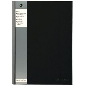Wirebound. Packed 3. Flexible full and flat-folding pad from cover to cover. Punched four holes for quick and easy filing. Standard A4 feint ruling and margin. High quality white 80gsm paper. Sidebound. 200 pages (100 sheets) per pad. Metallic cover.