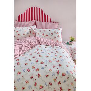 An archival print revived, the much-loved Rose and Bows artwork features classic roses in tones of Red, Pink, and warm yellow Cheerful blue bows mix with rose posies to create this joyful design. Finished with smart red piping for a touch of modernity and a classic red stripe reverse. Printed onto a soft 100% cotton percale ground Super King size duvet cover (220x260cm) and 2 pillowcases (50x75cm). Material composition: 100% Cotton. Care instructions: Machine Washable