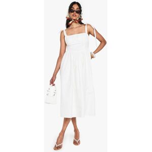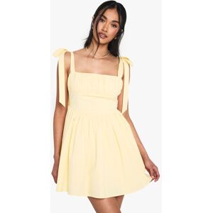 Cotton mini dress with elegant square neckline for a flattering silhouette Distinctive ruched bust detail adding texture and dimension Charming tie straps that can be adjusted for the perfect fit Gathered skirt creating a playful, feminine flare Versatile design suitable for day-to-night styling This delightful cotton mini dress from Boohoo combines comfort with effortless style. The ruched bust detail creates a flattering shape whilst the adjustable tie straps add a playful touch that can be styled to your preference. Perfect for casual outings, this dress pairs beautifully with flat sandals and a simple necklace as shown for daytime adventures. For family gatherings or brunches with friends, complement with a denim jacket and trainers for an easy-going look. The gathered skirt offers movement and a carefree feel, making it ideal for summer festivals or garden parties. Accessorise with minimal jewellery and a small crossbody bag to maintain the dress's fresh, uncomplicated charm. This versatile piece works wonderfully for various casual occasions whilst keeping you comfortable and stylish throughout the day.