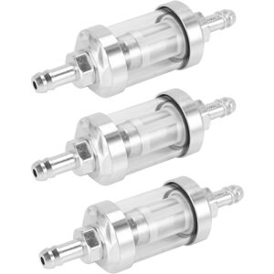 Brand New Chrome Glass Fuel Filter 8mm Inlet & Outlet Spin-on Filter for Cleaning Color: Silver Material: Aluminum Alloy Joint & Glass Shell Package Includes: 5 x Fuel Petrol Crude Oil Engine Line Filter Only the above package content, other products are not included. Note: Light shooting and different displays may cause the color of the item in the picture a little different from the real thing. The measurement allowed error is +/- 1-3 cm.