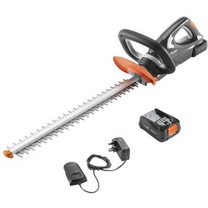 The Flymo 18V UltraCut 500 is a 50cm battery hedgetrimmer with advanced features for an ultra trimming experience with no restricting cord for greater freedom and flexibility. Designed for medium to large gardens and powered by one 18V Power4All battery, which can be shared across a wide range of tools within the Power4All Alliance. The precision blades ensure a high quality cut every time. The lightweight and balanced design reduces fatigue whilst working. In addition the debris guard and blade tip protector increases operator safety and blade protection when trimming close to walls or fences. Packed with convenient features such as an LED display to see the remaining battery charge from the operating position. The 270° handle with wrap around touch point offers you the flexibility to cut at every angle and enjoy trimming up to 190m2 of bushes & hedges on one single charge. Bare unit - battery & charger not included Power for All AllianceSystem - Exactly what you need from one
