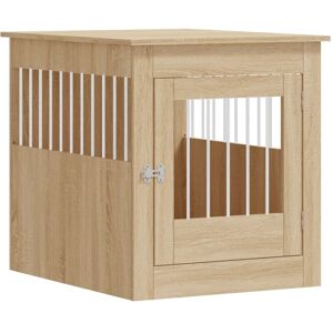 This dog crate furniture, serving as both a dog cage and an end table, makes a practical and eye-catching addition to your living room. Sturdy construction: The doghouse is made of steel wires and engineered wood, ensuring both safety and durability. The engineered wood is of exceptional quality with smooth surface and also features strength, stability and resistance to moisture. 2-in-1 function: This dog kennel perfectly combines style and functions. It not only provides your furry friend with a cosy spot to nap but also doubles as an end table for you to place your favorite decorations. Ventilation design: The steel wire windows allow air to flow properly in the dog cage and prevent bad odours, creating a comfy sleeping environment for your dogs. Lockable door: This dog crate has a latched door for extra safety. Additionally, you can install the door either on the left side or right side based on your own needs. Colour: Brown oak Material: Engineered wood, steel Overall dimensions: