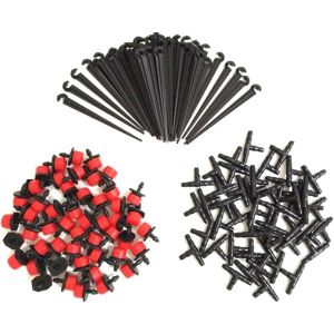 Package Included: 50pcs Adjustable Dripper + 50pcs T Joint + 50pcs Tube Holder.Material: Plastics, Dripper Dimension: 2.5 x 1.5cm. T Joint Dimension: 3.5 x2cm.Working Pressure: 1.5-4kg. Adjustable Flow Range: 0-70 L/h You can adjust the flow rate as needed. Easy to remove and wash.You can rotate the screw (the red part) to adjust the water supply Ideal for home gardening, public green spaces, gardening, agricultural production etc. T joint and tube holder for 4mm / 7mm (inner / outer diameter) tube