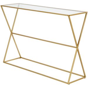 Minimalist geometric lines and a sturdy tempered glass top make this console table the perfect addition to your living room, bedroom, or entryway. Proudly display knick-knacks, magazines, and more on the tempered glass top, or showcase a collection of scarves or textiles on the central crossbar. The streamlined look and neutral metallic finish pair seamlessly with your existing colour scheme and décor style. Blue Elephant Table Base Colour: Gold