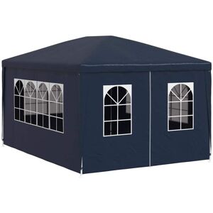 Our party tent provides a wonderful place to entertain your family and friends at all sorts of outdoor parties and get-togethers. Durable material: The garden marquee is made of UV- and water-resistant polyethylene material and therefore very practical for outdoor use. Stable frame: The frame is manufactured from rust-resistant steel, making the outdoor canopy stable and durable. Practical design: The party tent has side panels, each with decorative windows, and 1 door panel with a zip for easy entrance. The garden gazebo is easy to assemble. Good to know: This product should NEVER be used under bad weather, such as strong wind, heavy rain, snow, storm, etc. This product is not suitable for use as a carport. Colour: Blue Material: PE roof and side panels + steel frame Dimensions: 4 x 3 x 2.55 m (L x W x H) Eave height from the ground: 2 m UV and water resistant Mounting materials included Fabric: Polyethylene: 100% SKU: 90335 The product is not suitable for the weather such as the