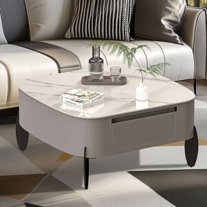 Sometimes you want to be noticed and sometimes you need to keep a low profile...we understand that completely. Keeping this in mind, we designed the Square Sintered Stone Coffee Table. Two bottom drawers open to provide ample storage options for remote controls, magazines and the like while leaving the table surface clutter-free. A simple white desktop paired with gray leather, creating a perfect modern minimalist and practical style. This beautiful and versatile Coffee Table can fit easily in your space. Specifications: Shape: Rounded Square Features: Different Materials Combination Room: Living Room, Lounger Room, Seating Room Material: MDF + Microfiber Saddle Leather + Sintered Stone + Iron + Pine Wood Color: White & Light Grey Weight Capacity: 50kg/ 110.23 lbs Net Weight: 36.05kg/ 79.48 lbs Product Dimension: L * W * H 80x80x39.5cm/ 31.50x31.50x15.55 inch Table Legs: each 17.4cm/ 6.85 inch Package Included: 1 x Coffee Table
