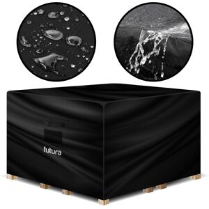 The Futura waterproof covers for outdoor furniture are the perfect item to keep your rattan garden table and chairs protected from rain and snow throughout the winter or to keep them from fading from the UV rays in the summer. The outdoor patio covers are manufactured from Heavy Duty Oxford Fabric and boast an extra strength PVC backing making it one of the most durable garden furniture covers in the market. With its black aesthetic design, it not only provides comprehensive protection but also enhances the look of your outdoor space. The Futura outdoor sofa covers are uniquely designed to withstand water pressure up to 8000 PA. This high-water resistance combined with its weatherproof design ensures your garden table and chairs stay dry and clean, regardless of the weather. The cover is also windproof, with included buckles and drawstrings that keep it firmly in position, even in the stormiest conditions. These garden chair covers come with an innovative breathable vent that prevents