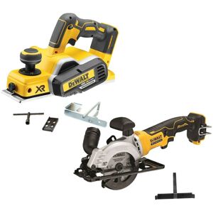 This set includes a Dewalt DCP580N 18v XR Li-ion Brushless Planer and a DCS570N Circular Saw The new DCP580N features a brushless motor which guarantees you'll get an efficient and cost-effective planer that will last for years to come. It will accept any of DeWalt's family of 18V XR Li-ion batteries so you can mix and match with your current tool collection. It has twin blades for a smoother finish, market-leading rebate capacity, increased runtime and a precision 0.1mm depth adjustment. With on-board blade/torx key storage and an air lock port this is a great all-round performer. DCP580N Features: Powerful brushless motor provides smooth planing performance combined with extended runtime Lightweight, compact and ergonomic design for comfortable use in all orientations Large twin blade drum with TCT blades for high quality surface finish On-board blade storage and Torx key enable fast blade change and minimise downtime Large front and rear shoe for improved stability Compatible with