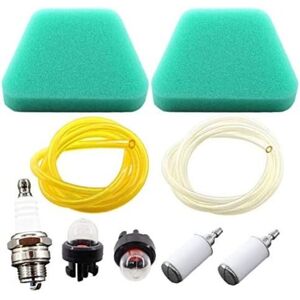 Fits McCulloch Mac 335, 435, 436, 438, 440, 441, 442, 444, 4-18XT, 4-20XT and others chainsaws Fits Partner P 351, 352, 370, 371, 390, 391, 420, 422, Formula 400, Formula 5000, etc. Fits Poulan 2050, 2115, 2150, 2175, 2250, 2375, 2450, 2550, 4016, Pro 4016, etc. Package Contents: 2x Air Filter + 2x Fuel Filter + 2x Primer Pump + 1x Spark Plug + 2x Fuel Hose (2 feet)