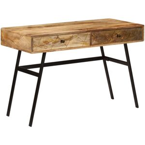 This wooden writing desk will make a unique addition to your interior with its industrial design. You can use it as a computer desk for your daily work or as a console table. The desktop is made of solid mango wood with oil finish. The strong steel legs contribute to the desk's solidity as well as its industrial charm. The desk has 2 drawers with ample space for keeping your important items organised and within reach. Important note: Colours vary from piece to piece which make each of our desks unique. The delivery is random, ensuring the exclusivity and individuality of your product. Material: Solid mango wood + cast steel legs Dimensions: 110 x 50 x 75 cm (W x D x H) Polished, painted and lacquered With 2 drawers SKU: 246718 EU responsible party Haba Trading B.V. Mary Kingsleystraat 1 5928SK Venlo The Netherlands Compliance-safety@vidaxl.com