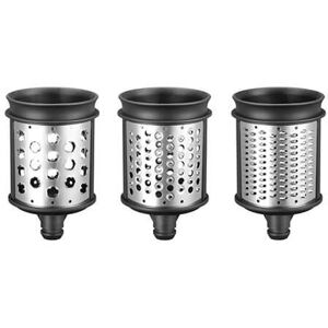 The set includes medium and coarse shredding drums and also a slicing drum, all made from stainless steel for durability and suitable for use with the KitchenAid stand mixer Fresh Prep Slicer / Shredder. Ideal for slicing vegetables and fruits and grating cheese, chocolate and nuts. The three drums are quick and easy to change for quick food preparation for delicious fresh lunches and meals The set including the 3 drums are dishwasher safe for easy and convenient cleaning and are presented in a storage case.