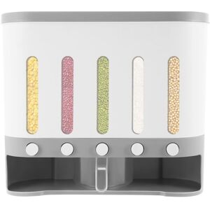 Description Cluttered grains in our homes have nowhere to go, and are also prone to mold and moisture, causing food waste and threatening our health. Therefore, you can take a look at our food dispenser, which is made of high-quality materials, and has a large capacity and beautiful design to ensure your long-term use. With it, the food in your home will be well preserved and distributed! Key Features Build to Last: It is made of high-quality PP and PS, making it safe to use and durable, and it can be adapted to humid environments, such as kitchens. Thoughtful Design: The convenient separate buttons for easy access to your ingredients, dispensing a certain amount of food with each turn to minimize clutter and spills, and preventing your hands from touching the food without crushing the grains. Plus the visual design lets you keep track of how much food is stored and add it promptly. Storge Assistant: The 5-compartment design helps keep your food organized (the two side compartments