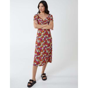 Bring some summer florals into your wardrobe with this beautiful lightweight midi dress! This ruched front swing dress will help to discover your femine nature. Pair with sandals for a day time look. Blue Vanilla Women's V Neck Ruched Milkmaid Midi Dress in Pink Size: 10